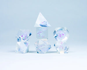 1x D4, 1x D6, 1x D8, 2x D10 (uno dei quali percentuale), 1x D12, 1x D20.